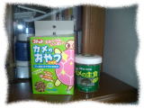 かめ吉のごはんはいたって簡単。 「カメの主食」と「カメのおやつ」が毎日のメニューです。 たまに、お肉やハムをちぎってやります。 食事は2回/日。 以前は水草を入れていたのですがみんな食べてしまうのでやめました。 キャベツを食べるかと思い入れた時期もあったのですが食べ残しが多いのでやめました。 かめ吉としては少々不服かも。 |